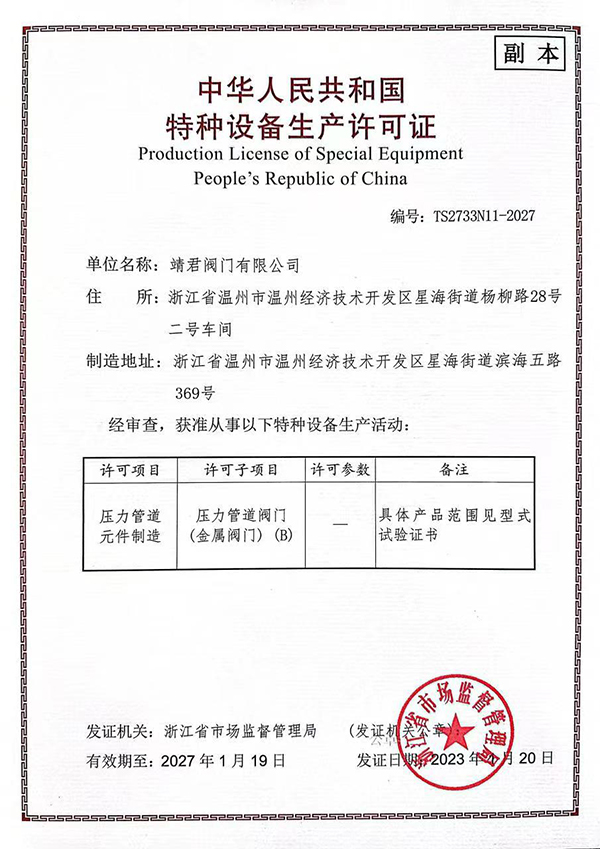 靖君閥門有限公司是專業(yè)生產(chǎn)閥門系列的企業(yè),座落于溫州經(jīng)濟(jì)技術(shù)開發(fā)區(qū)濱海園區(qū),交通便利。本公司是一家集設(shè)計(jì)、開發(fā)、生產(chǎn)于一體的閥門企業(yè),主要產(chǎn)品有各類高平臺(tái)球閥、氣動(dòng)閥門、電動(dòng)閥門、螺紋球閥、法蘭球閥、閘閥、截止閥、止回閥、一片式,兩片式,三片式球閥及絲扣閥門,過濾器等系列產(chǎn)品產(chǎn)品可根據(jù)不同要求分別采用GB、API、ANSI、BS標(biāo)準(zhǔn)進(jìn)行設(shè)計(jì)、生產(chǎn)和驗(yàn)收??筛鶕?jù)使用介質(zhì)、溫度不同及材料分別采用碳鋼、不銹鋼、低溫鋼、合金鋼、耐高溫、超高溫特殊鋼等;傳動(dòng)方式可分別選用手動(dòng)、 蝸輪傳動(dòng)、氣動(dòng)、液動(dòng)、電動(dòng)等。