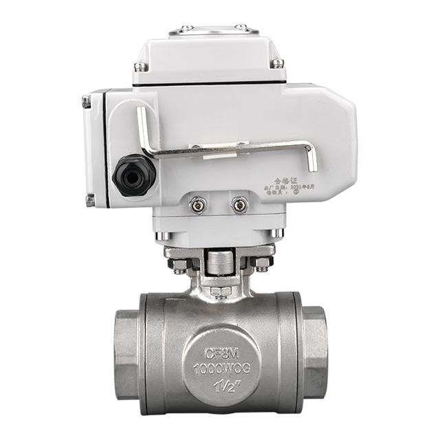 電動三通內(nèi)螺紋球閥是由DSR系列角行程電動執(zhí)行器及內(nèi)螺紋三通球閥組成,是一種旋轉(zhuǎn)類切斷、調(diào)節(jié)閥門,具有關(guān)閉嚴(yán)密,結(jié)構(gòu)緊湊,重量輕,維修方便等優(yōu)點。電動三通內(nèi)螺紋球閥以220V單相交流電為動力源,接受控制系統(tǒng)的開關(guān)信號,通過單相電源切換驅(qū)動可逆單相齒輪減速機,使球閥按規(guī)定要求對管路進行切換。兩閥座密封電動三通內(nèi)螺紋球閥具有結(jié)構(gòu)緊湊、外型美觀、密封性能好,它能實現(xiàn)對管道中介質(zhì)流向的切換,也能使相互垂直的兩個通道連通或關(guān)閉。四閥座密封內(nèi)螺紋電動三通球閥具有造型美觀、結(jié)構(gòu)緊湊合理。它不僅可實現(xiàn)介質(zhì)流向的切換,也可使三個通道相互連通,現(xiàn)時也可關(guān)閉任一通道,使另外兩個通道連通,靈活控制管路中介質(zhì)的合流或分流。電動三通內(nèi)螺紋球閥適用于供水、石化、冶金、礦山、輕紡、能源、造紙、食品、鋼鐵等管路系統(tǒng)中對介質(zhì)流向進行切換以及對介質(zhì)的分流或混合流體。